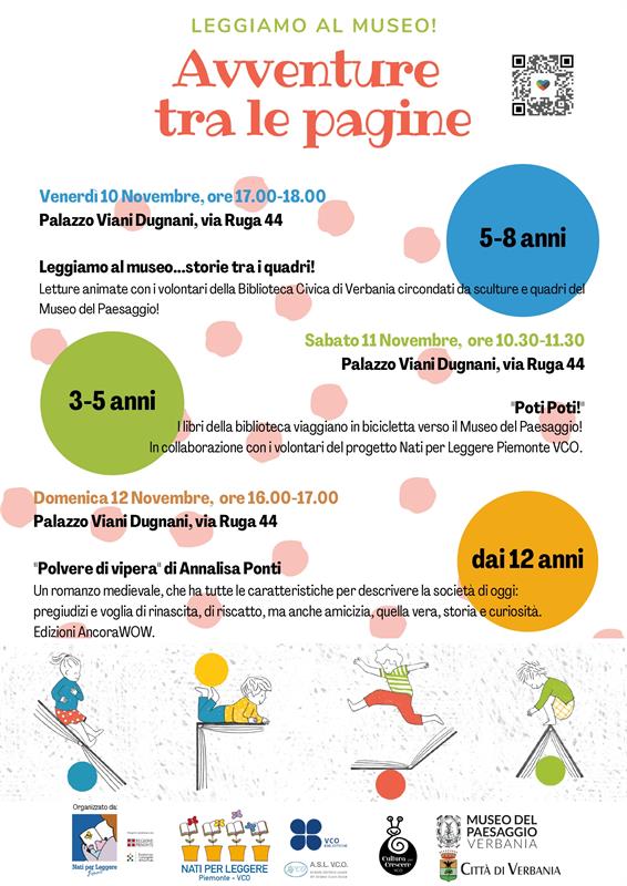- Sabato 11 Novembre > ore 10.30-11.30 - "Poti Poti!" I libri della biblioteca viaggiano in bicicletta verso il Museo del Paesaggio! In collaborazione con i volontari del progetto Nati per Leggere Piemonte VCO. Per bambini dai 3 ai 6 anni.