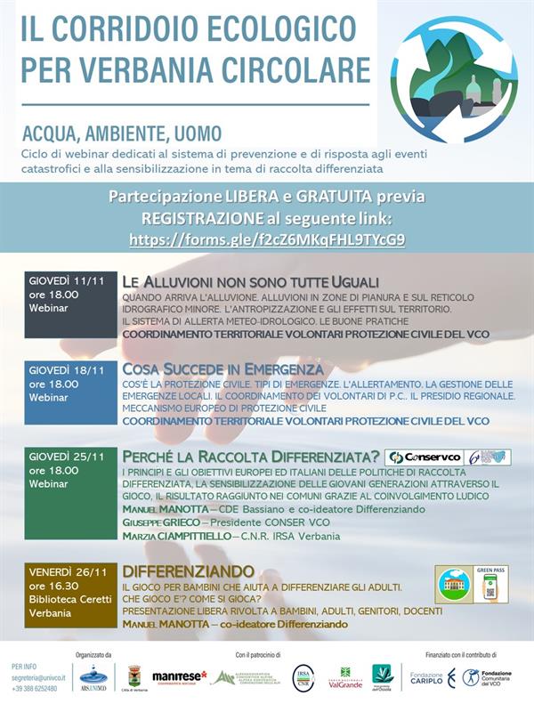 Differenziando è uno dei quattro appuntamenti proposti da Ars.Uni.VCO dedicati al sistema di prevenzione e di risposta agli eventi