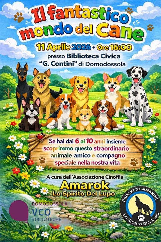 L’incontro, a cura dell’Associazione Cinofila Amarok, si rivolge ai bambini dai 6 ai 10 anni e sarà un’occasione per andare alla scoperta del fantastico mondo del cane.