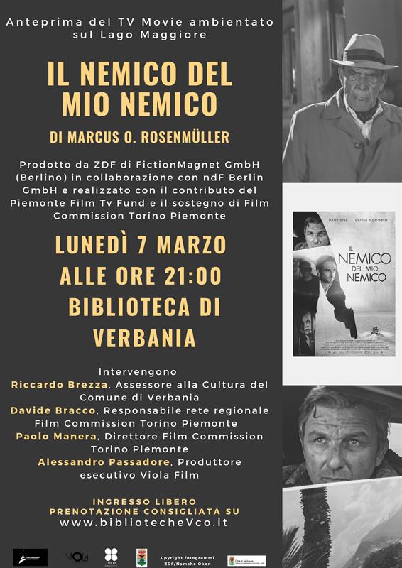 Lunedì 7 marzo, ore 21.00, la Biblioteca di Verbania presenta in anteprima il TV Movie ambientato sul Lago Maggiore "Il nemico del mio nemico".