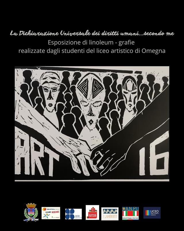 I ragazzi si sono ispirati alla Dichiarazione Universale dei Diritti Umani, rielaborandone i principi attraverso linguaggi visivi e creativi, il risultato è un’esposizione di linoleum - grafie ricca di significato che invita il visitatore a interrogarsi sui valori di libertà, uguaglianza e dignità.