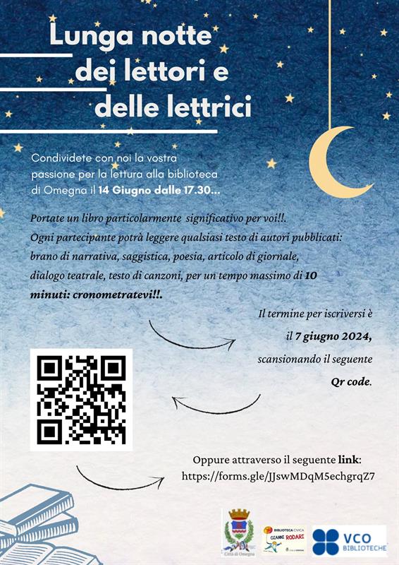 Venite a leggere con noi alla biblioteca di Omegna! Scegliete un libro o un brano particolarmente significativo per voi, portatelo e condividetelo! Ogni partecipante potrà leggere qualsiasi testo di autori pubblicati: brano di narrativa, saggistica, poesia, articolo di giornale, dialogo teatrale, testo di canzone per un tempo massimo di 10 minuti. Cronometratevi!