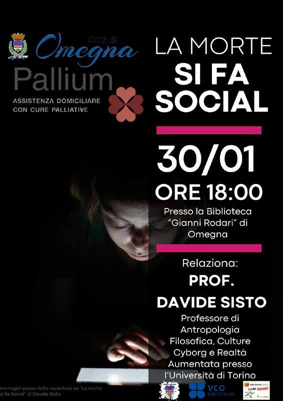 Incontro con Davide Sisto, giovane filosofo che da lungo tempo ha consacrato i suoi studi alla relazione tra morte e cultura digitale Sarà un'occasione per riflettere sui contenuti di La monte si fa social volume in cui viene analizzato il rapporto nuovo della nostra società con la morte indotto dall’avanzamento tecnologico.