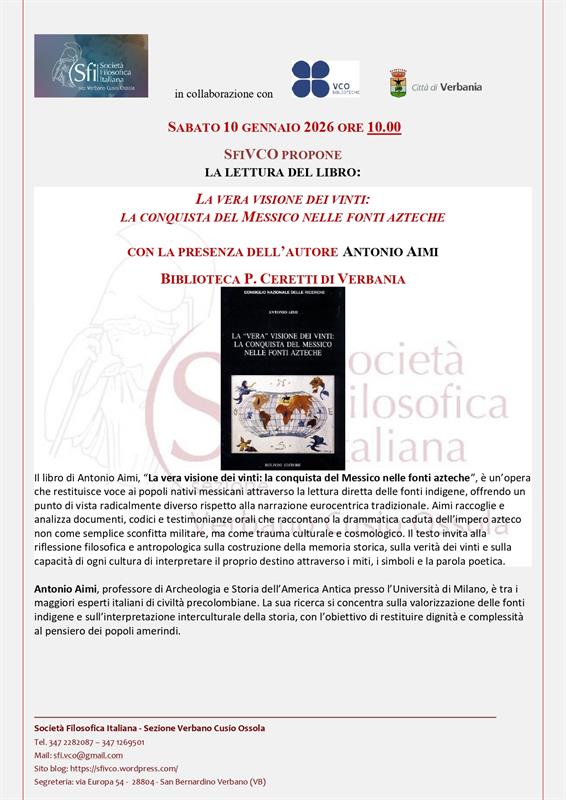 SfiVco propone il libro di Antonio Aimi, “La vera visione dei vinti: la conquista del Messico nelle fonti azteche”, è un’opera che restituisce voce ai popoli nativi messicani attraverso la lettura diretta delle fonti indigene, offrendo un punto di vista radicalmente diverso rispetto alla narrazione eurocentrica tradizionale.