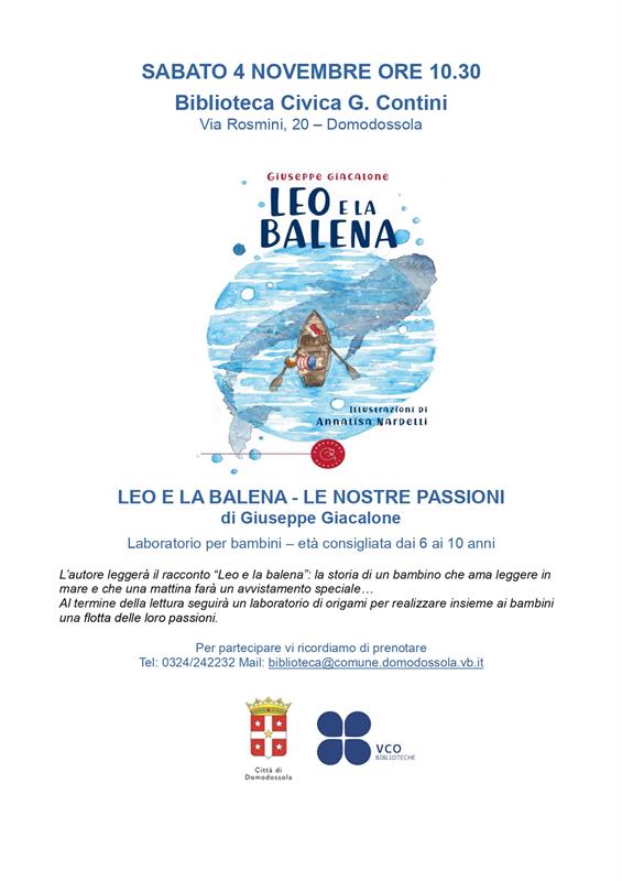 L’autore leggerà il racconto “Leo e la balena”: la storia di un bambino che ama leggere in