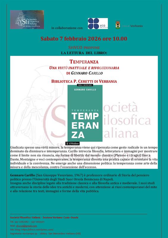 SfiVco propone la lettura del libro "Temperanza, una virtù inattuale e rivoluzionaria" di Gennaro Carillo.