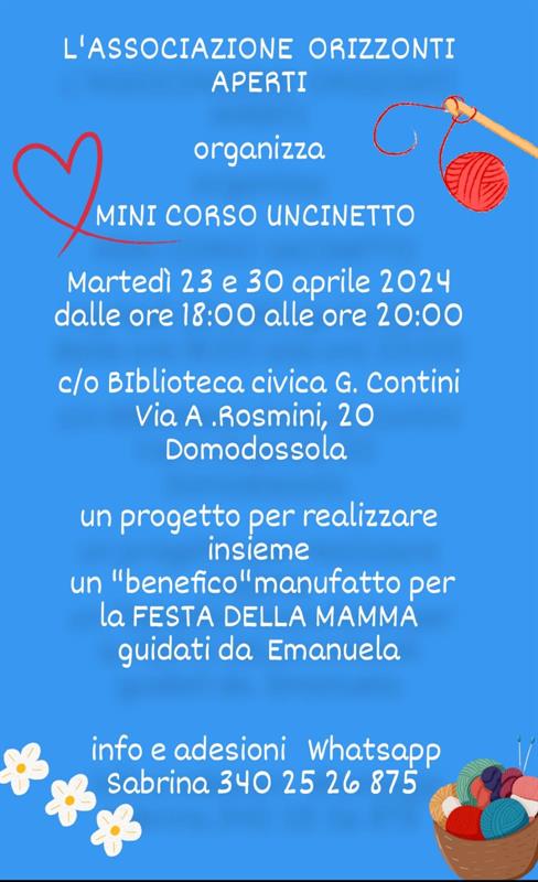 Durante l'incontro verranno illustrate le tecniche principali per lavorare ad uncinetto e i partecipanti realizzeranno un cestino fatto con le proprie mani che potrebbe diventare un pensiero originale da regalare.