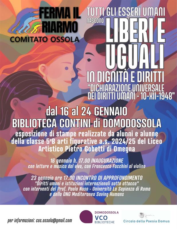 In mostra le 15 linoleografie del Liceo Artistico Gobetti di Omegna: un'interpretazione artistica della Dichiarazione Universale dei Diritti Umani.