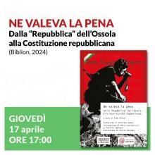 Giovedì 17 aprile, alle ore 17:00, verrà presentata la nuova edizione del libro di Aldo Aniasi Ne valeva la pena. Dalla "Repubblica" dell'Ossola alla Costituzione repubblicana, a cura di Fiorella Imprenti e Mirco Carrattieri (Biblion/Fondazione Aldo Aniasi, 2024).