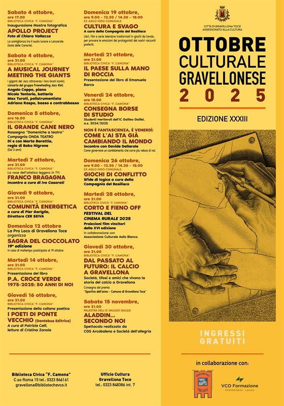 Programma della XXXIII Edizione della rassegna "Ottobre Culturale Gravellonese".