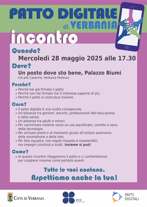 Mercoledì 28 maggio alle 17.30 ci incontriamo a Un posto dove sto bene per parlare del Patto digitale di Verbania.