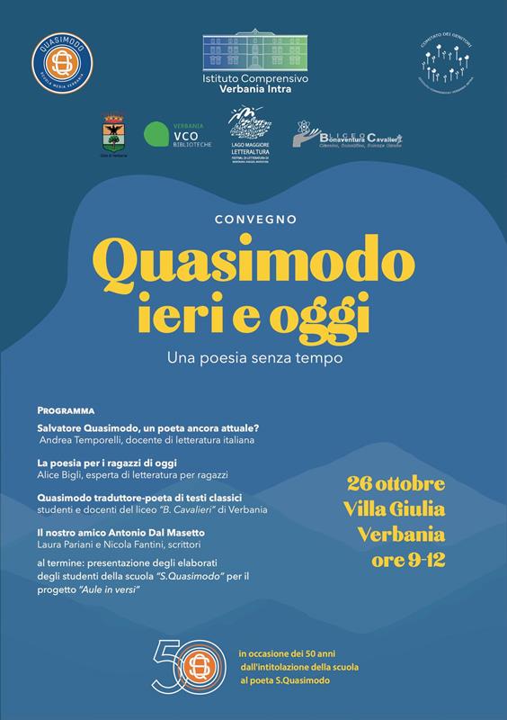 L'evento è organizzato dall’Istituto Comprensivo Statale Verbania-Intra per celebrare i 50 anni dell’intitolazione della scuola media di Via Rosmini al poeta siciliano Salvatore Quasimodo.