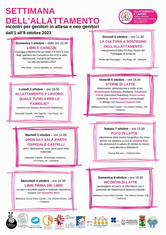 Settimana dell'allattamento: incontri organizzati dall'ASL VCO Dipartimento Materno-Infantile, in collaborazione con Nati per Leggere.