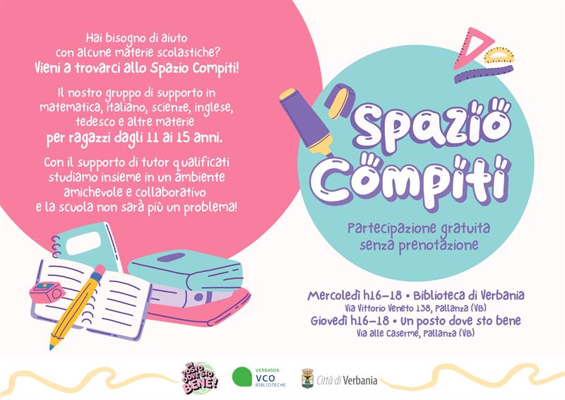 Hai bisogno di aiuto con i compiti? Vieni a trovarci allo Spazio compiti!