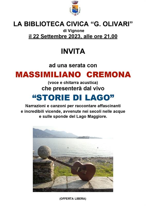 Venerdì 22 settembre, ore 21.00, alla biblioteca di Vignone, Massimiliano Cremona armato di voce e chitarra acustica, presenterà