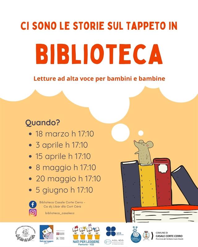 Continua le letture alla Biblioteca di Casale Corte Cerro, per bambini e bambine si scuole dell'infanzia ed elementari a cui piace avventurarsi tra storie e protagonisti tutti nuovi e inaspettati.