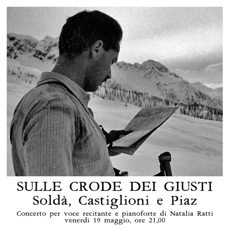 Venerdì 19 maggio, alle ore 21.00, nell'ambito della rassegna Passaggi di speranza, si terrà alla Casa della Resistenza lo spettacolo Sulle crode dei giusti: Soldà, Castiglioni e Piaz di Natalìa Ratti.